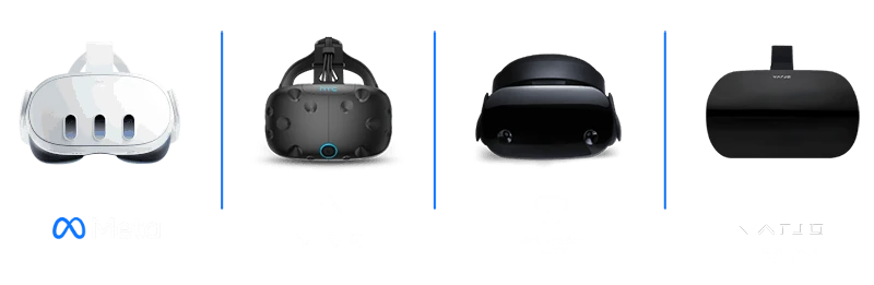 Oculus Rift, Oculus Rift S, HTC Vive (Pro), Windows Mixed Reality, Varjo VR 1/2, Varjo XR 1/2, Valve Index, HTC Cosmos, Pimax.